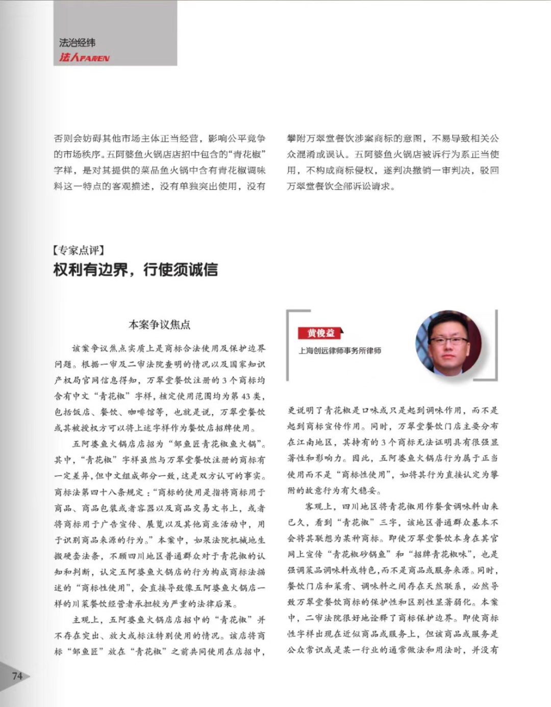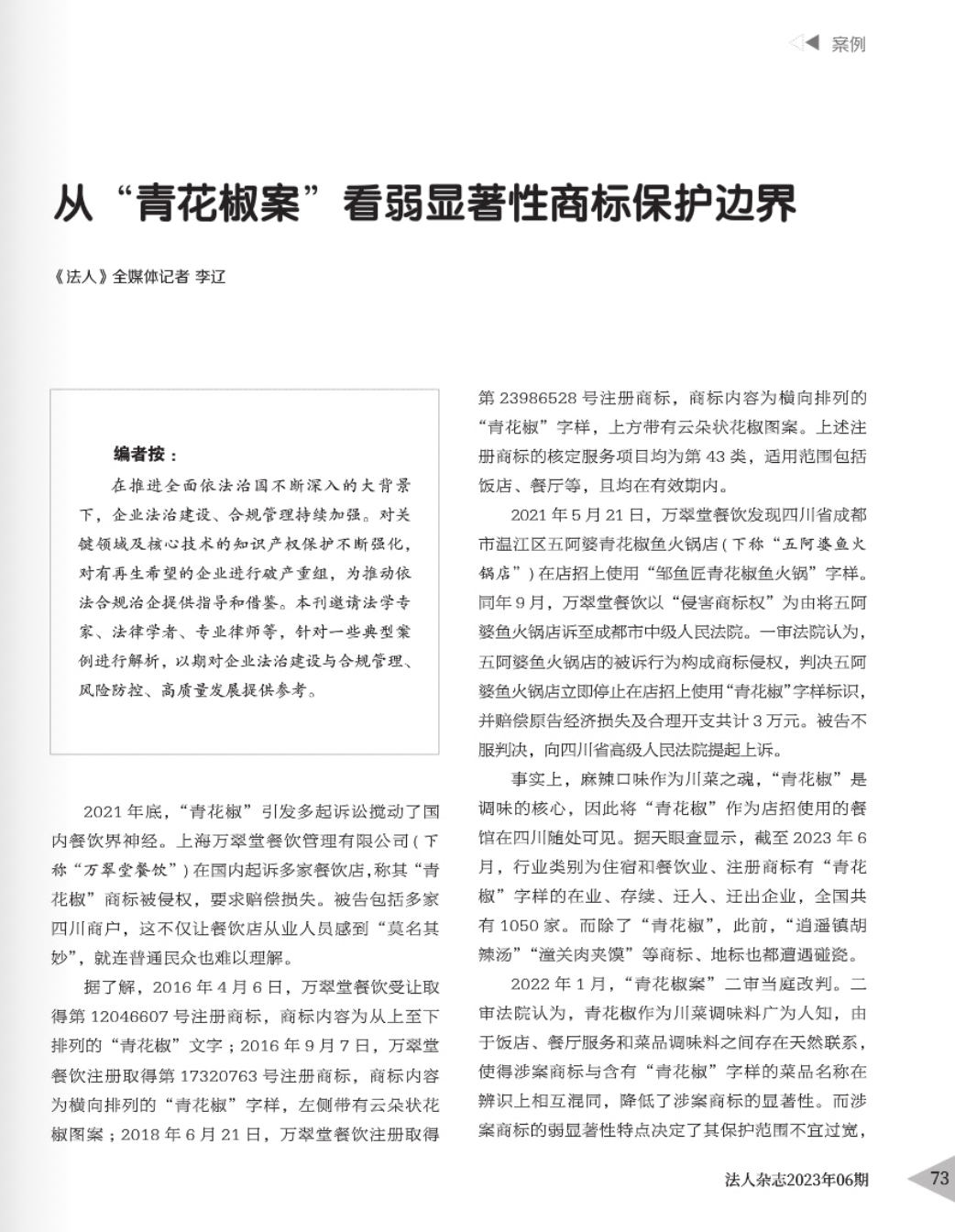 濮阳辉知简讯 | 辉知队黄俊益律师应“法治日报”旗下杂志邀请,就“青花椒”案发表专家点评