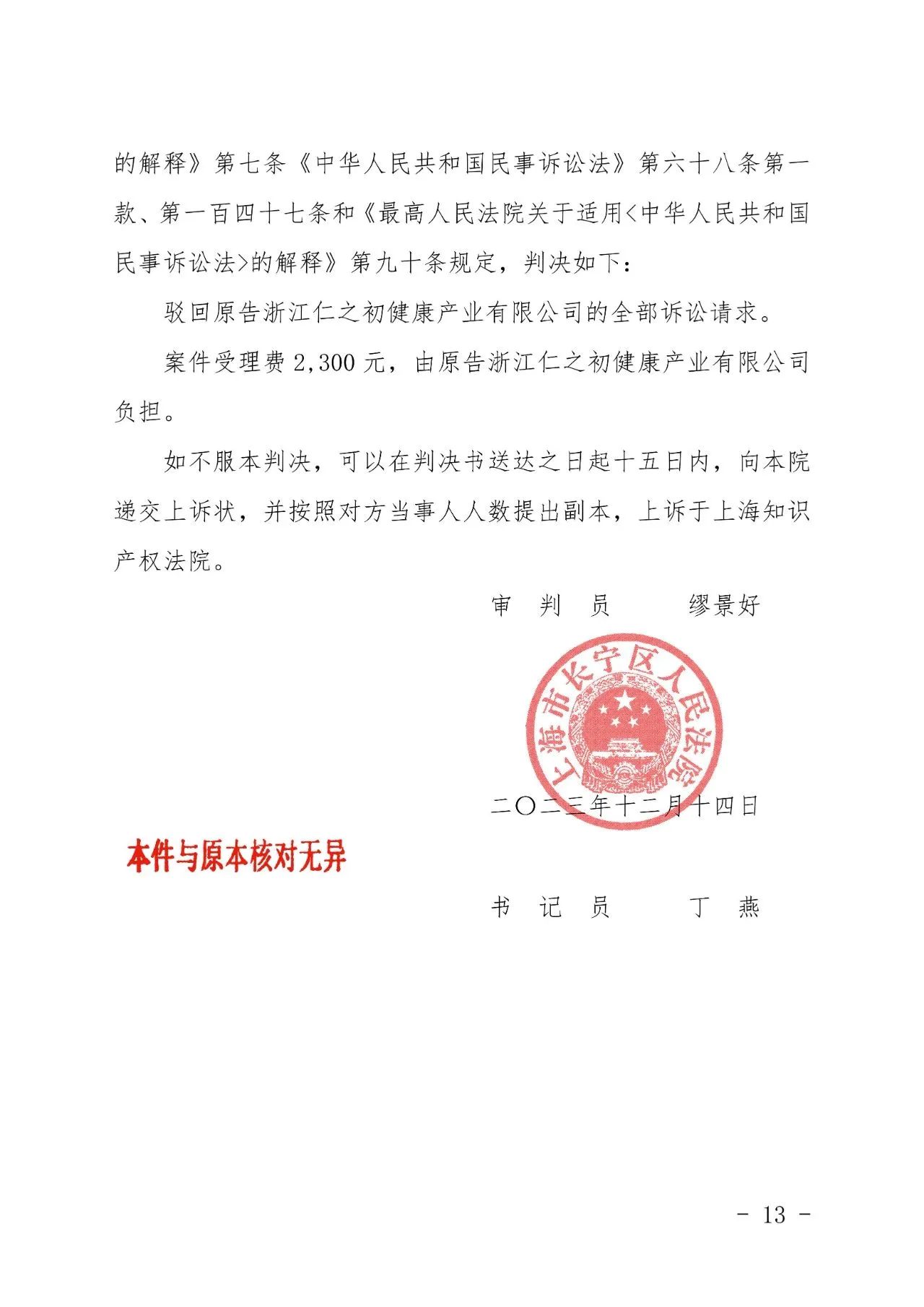 濮阳辉知胜诉佳讯 | “仁之初健康”著作权及不正当竞争纠纷案,法院:驳回全部诉讼请求!